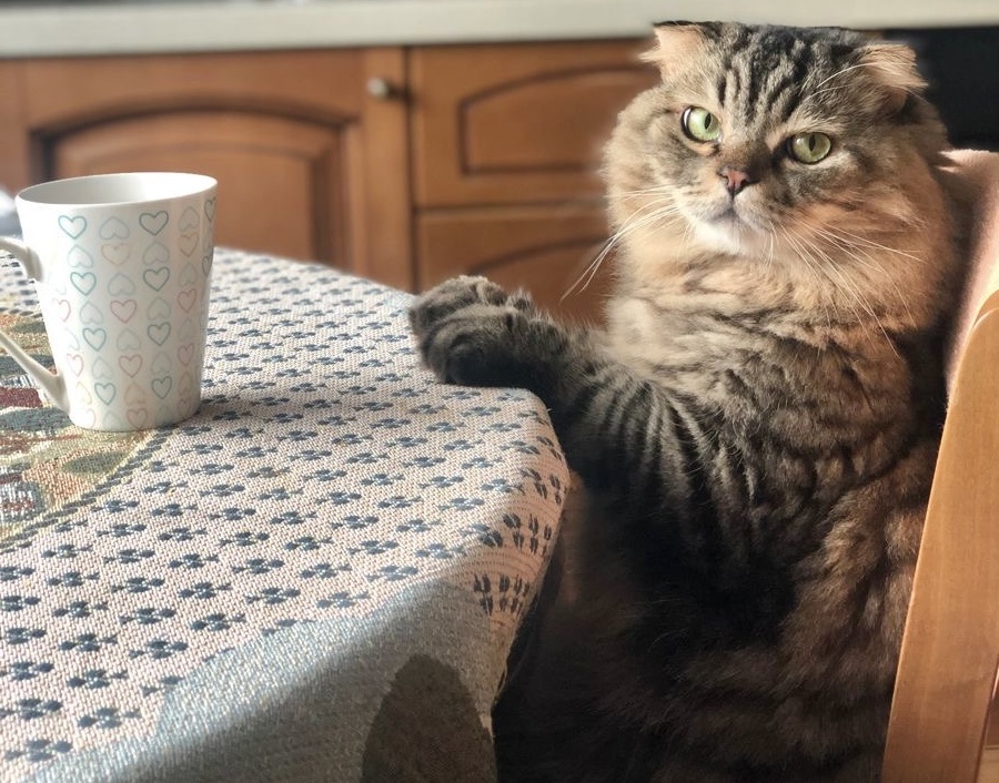 Представьте себе: до полугода это кошачье недоразумение не умело прятать когти! Нет, никого сроду не поцарапал (обнимает ладонь пухлыми лапами, тянет на себя и молчит), просто когти цеплялись за всё постороннее на свете: плед, занавеску, покрывало, пальто в прихожей, ковры и полотенца.